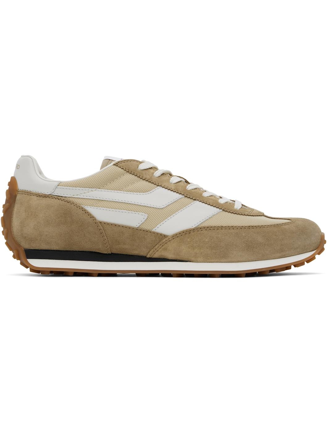 Low-top suede, mesh and buffed leather sneakers in khaki. · Lace-up closure · Logo patch at tongue · Padded collar · Logo applique at sides · Logo stamp at heel tab · Rubberized trim at heel counter · Mesh lining · Treaded rubber sole Supplier color: Dark sugar/Amber