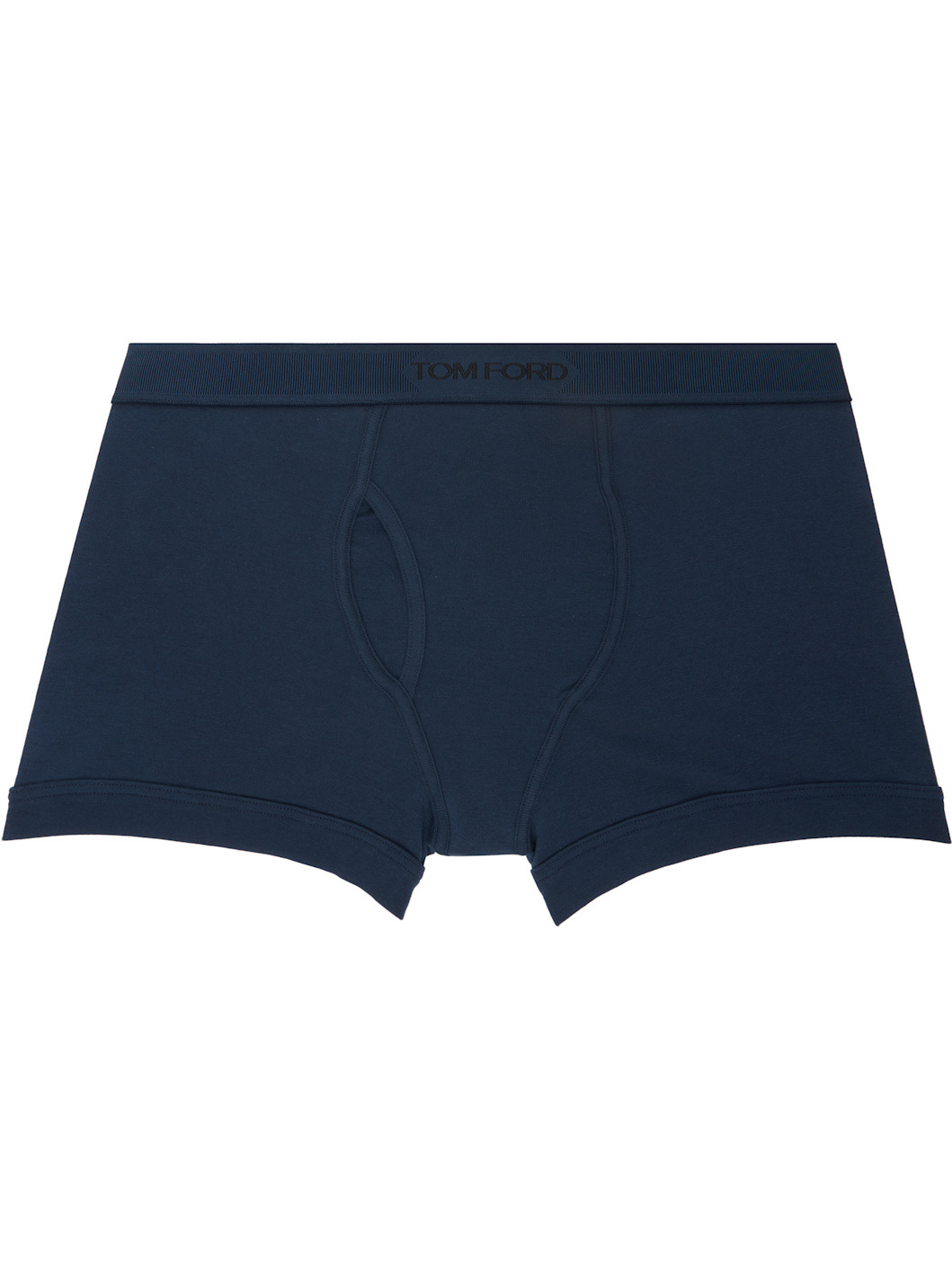 Stretch cotton jersey boxer briefs. Jacquard logo at elasticized waistband. Supplier color: Dark Sapphire 95% cotton, 5% elastane. Made in Bosnia And Herzegowina 251076M216019