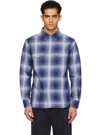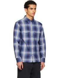Cotton twill shirt. · Check pattern throughout · Spread collar · Press-stud closure · Flap pockets at chest · Shirttail hem · Pleat at press-stud barrel cuffs Supplier color: Navy multicolor 100% cotton. Made in Italy 261076M192021