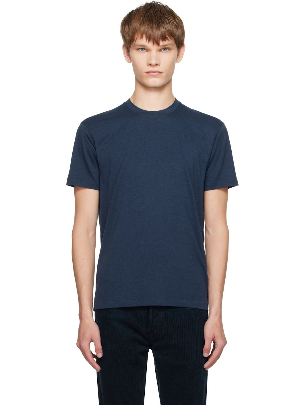 Navy Lyocell Cotton Crewneck T-shirt