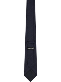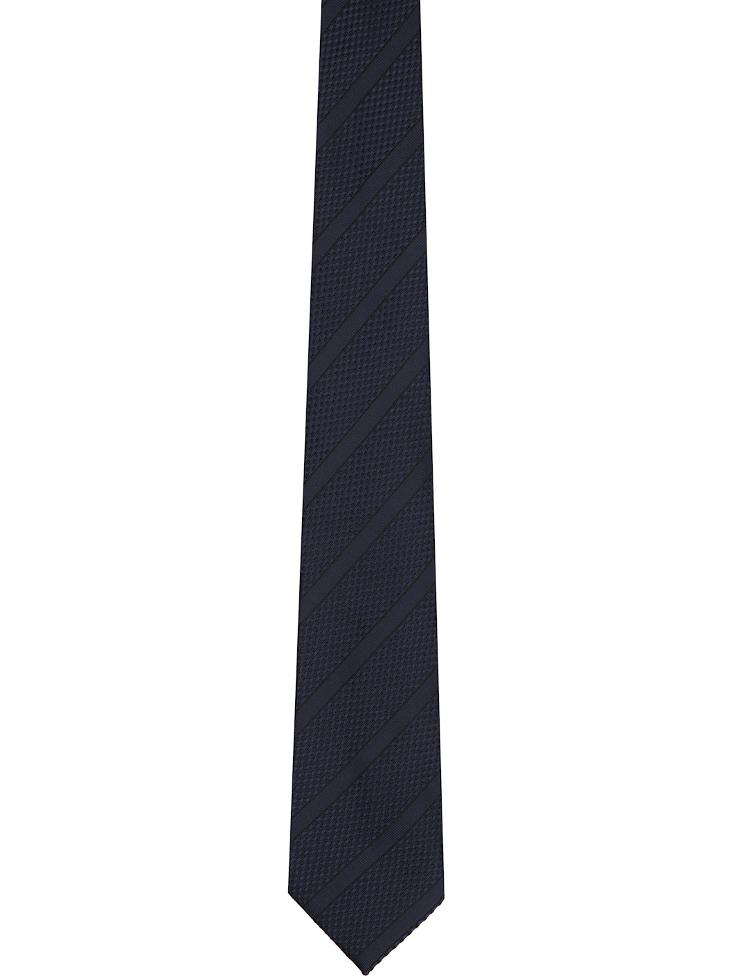 Woven silk tie. · Jacquard stripes throughout · Keeper loop at back face · W3" Supplier color: Navy 100% silk. Made in Italy 252076M158004