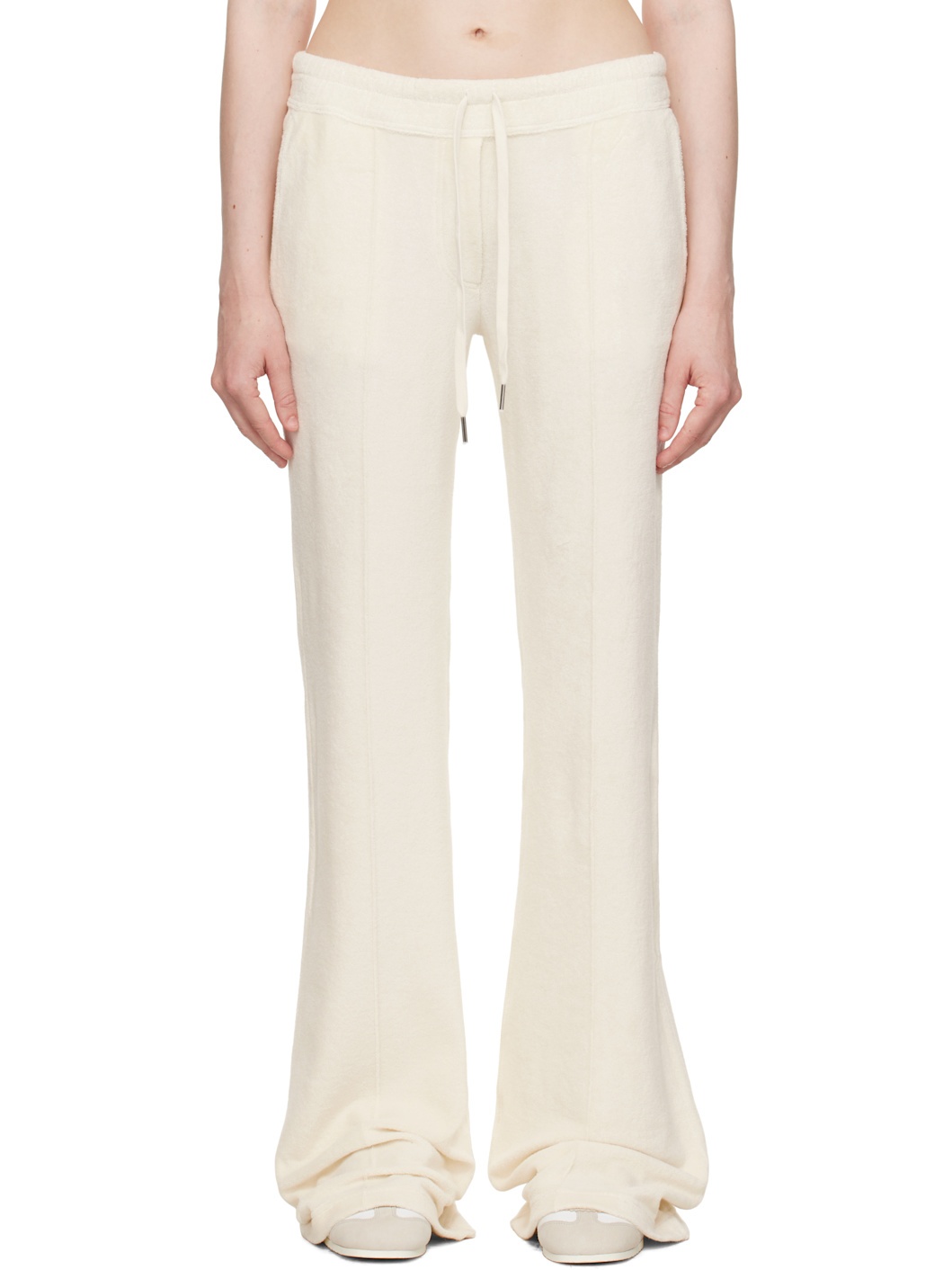 Flared cotton-blend terrycloth lounge pants. · Drawstring at elasticized waistband · Four-pocket styling · Mock fly · Central pinched seam at legs Supplier color: Ecru 82% cotton, 18% nylon. Made in Portugal 251076F086004