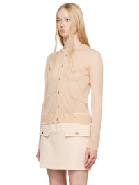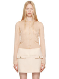 Semi-sheer knit viscose-blend cardigan. · Rib-knit crewneck · Button closure · Mother-of-pearl hardware Supplier color: Powder pink 76% viscose, 24% polyamide. Made in Italy 251076F095000