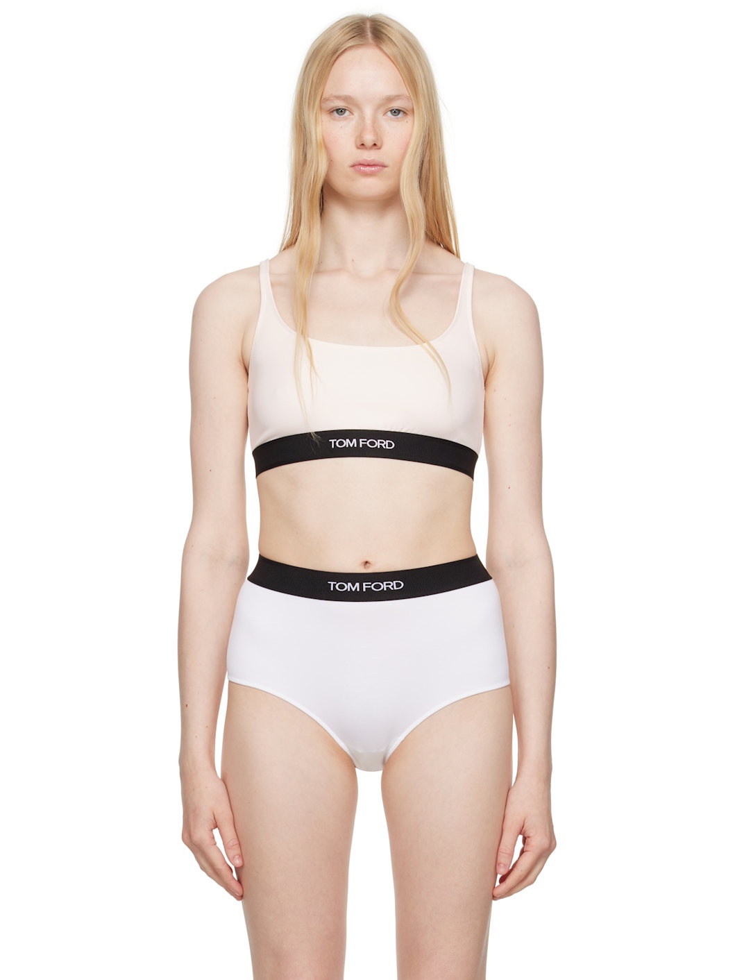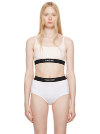 Stretch modal jersey bralette. · Scoop neck · Jacquard logo at elasticized hem · Low back · Partial stretch jersey lining Supplier color: Champagne pink Body: 97% modal, 3% elastane. Trim: 82% polyester, 9% elastane, 9% nylon. Made in Italy 251076F073008