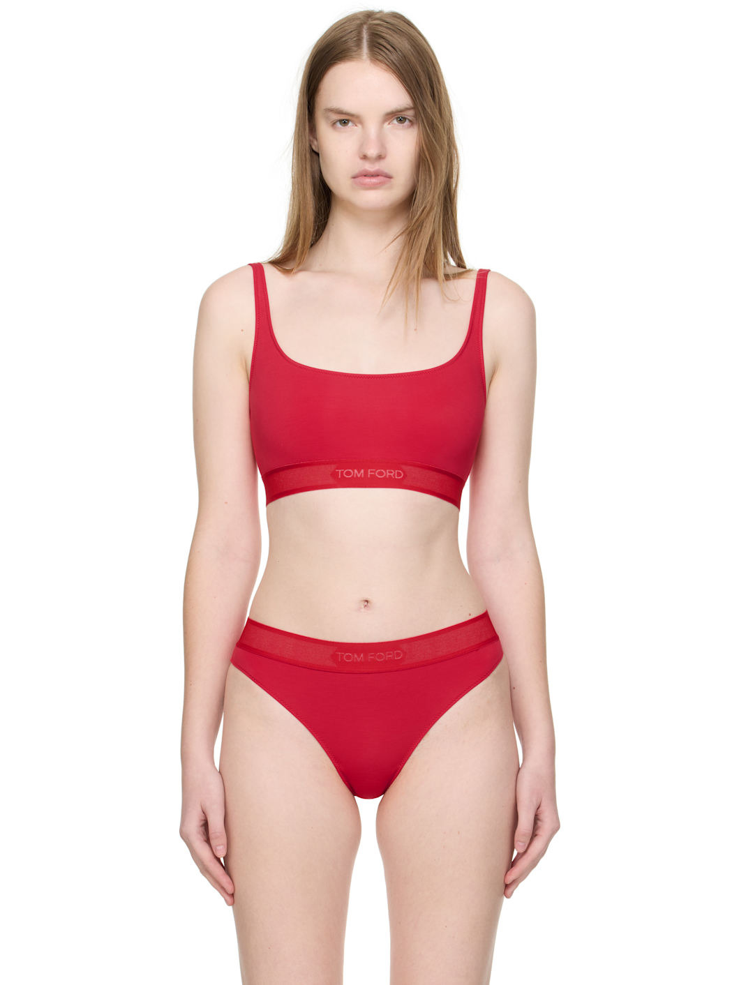 Stretch modal jersey bralette. · Scoop neck · Jacquard logo at elasticized hem · Integrated shoulder straps · Low back Supplier color: Scarlet Body: 97% modal, 3% elastane. Trim: 82% polyester, 9% polyamide, 9% elastane. Made in Bosnia And Herzegowina 252076F073005