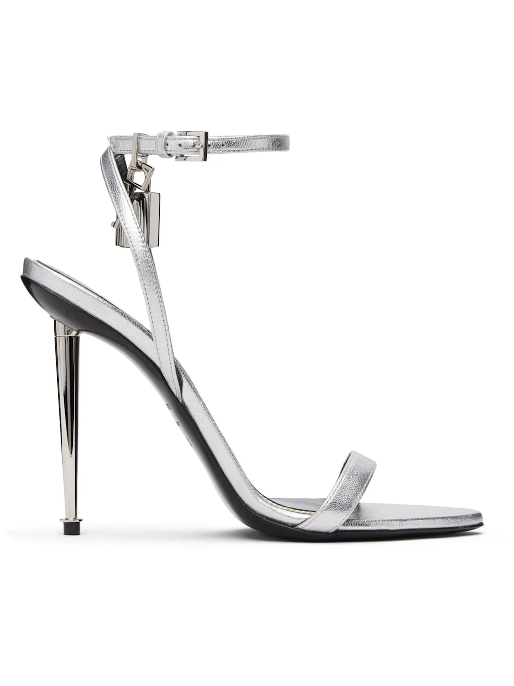 Silver Nappa Padlock Pointy Naked Heeled Sandals