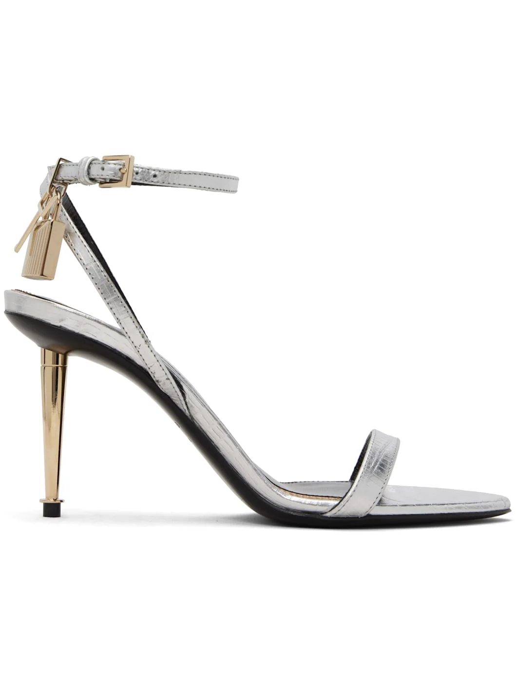 Silver Nappa Padlock Pointy Naked Heeled Sandals