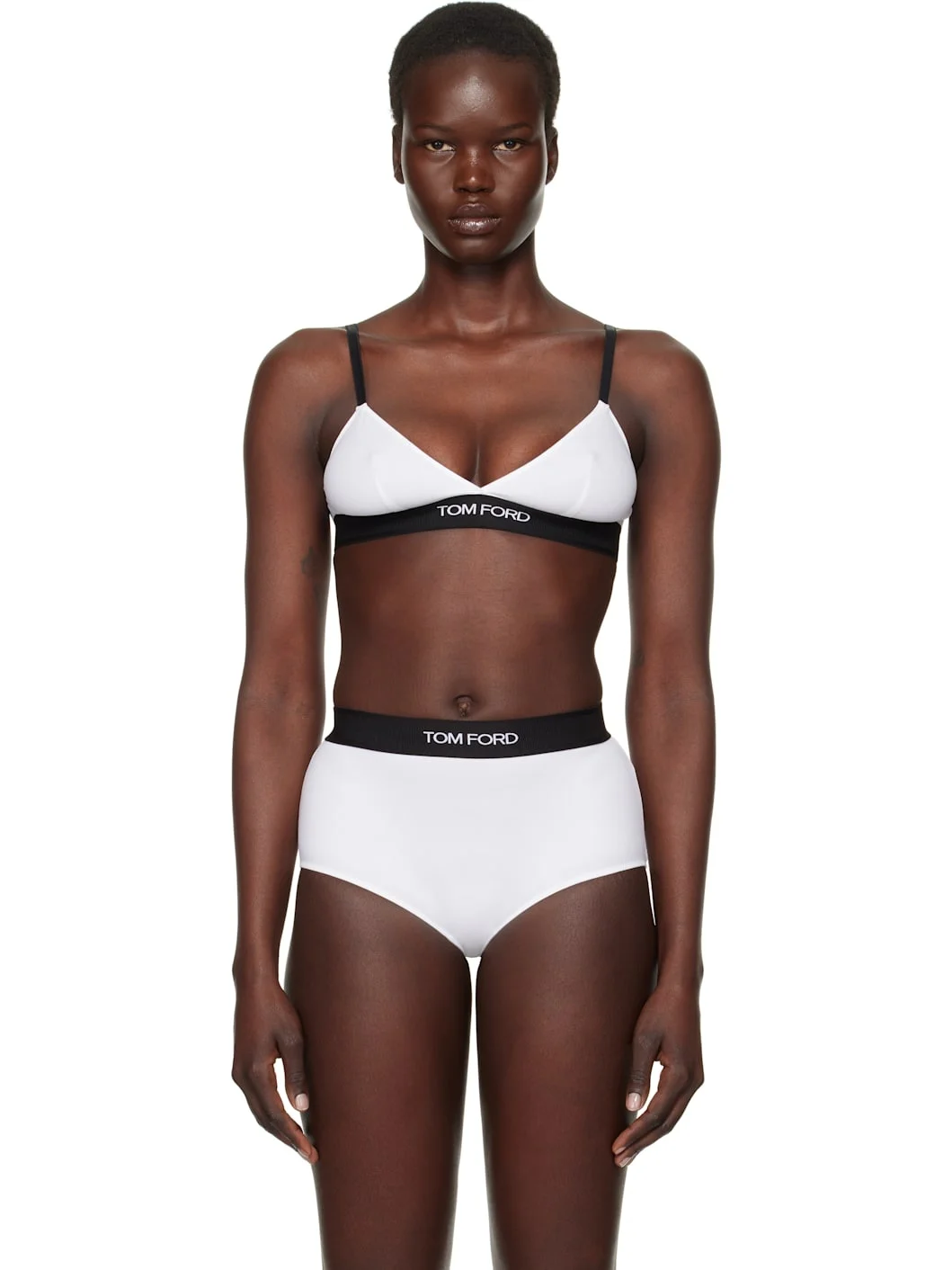 Stretch modal jersey bra. · V-neck · Dart at cups · Logo-woven elasticized hem · Adjustable spaghetti straps · Hook-eye fastening at back Supplier color: White 97% modal, 3% elastane. Made in Bosnia And Herzegowina 251076F073003