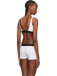 Stretch modal jersey bra. · Square neck · Fixed shoulder straps · Jacquard logo at elasticized hem · Fully lined Supplier color: White Body: 97% modal, 3% elastane. Trim: 82% polyester, 9% polyamide, 9% elastane. Made in Bosnia And Herzegowina 241076F073003
