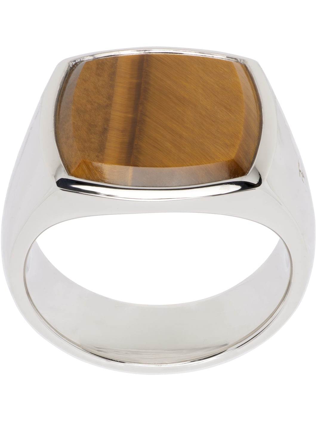 Signet ring in rhodium-plated sterling silver. · Tiger's eye stone at face · Hallmarking at inner band Supplier color: 925 silver Rhodium-plated 925 sterling silver, tiger's eye. Made in Thailand 252762M147001
