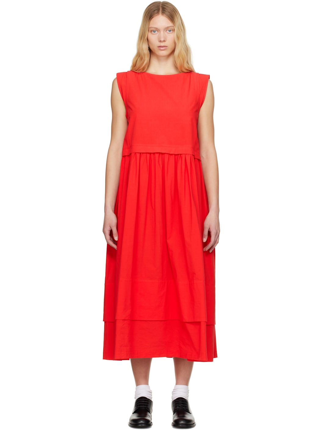 Lightweight cotton ripstop maxi dress. · Boat neck · Gathering at skirt · Tiered hem · Welt pockets · Cap sleeves Supplier color: Jam 100% cotton. Made in Portugal 251676F055000