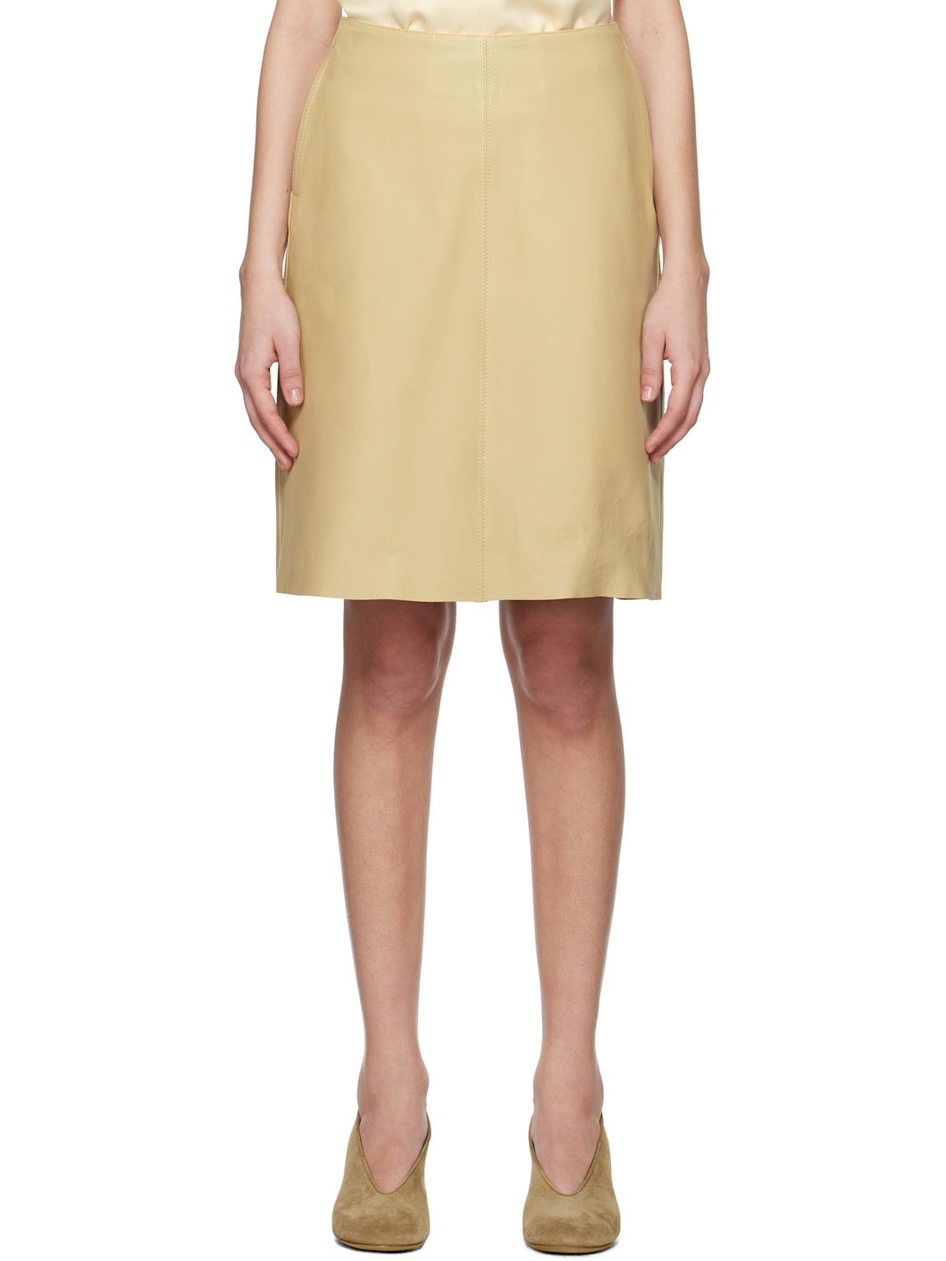Beige A-line Leather Miniskirt