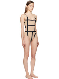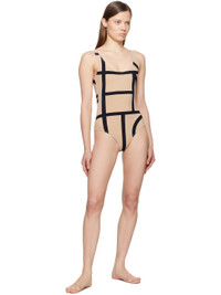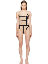 Stretch recycled nylon jersey one-piece swimsuit. Logo pattern printed throughout. · Scoop neck · Low back · Fully lined Supplier color: Beige Body: 73% recycled polyamide, 27% elastane. Lining: 73% recycled polyamide, 27% elastane. Made in Portugal 251771F103002