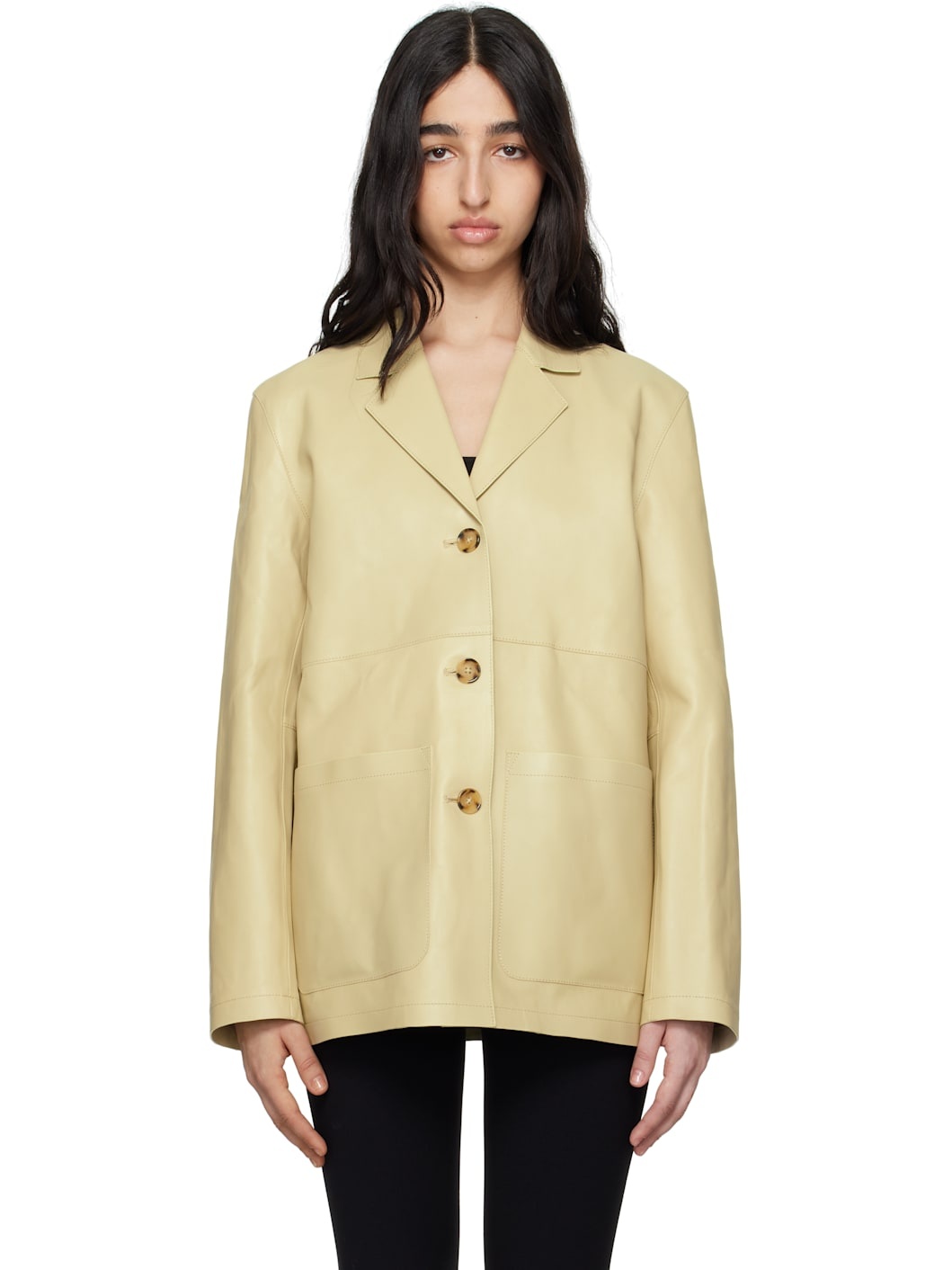 Paneled grained lambskin jacket. · Notched lapel · Button closure · Patch pockets · Unlined Supplier color: Peanut 100% lambskin. Made in Turkey 251771F064000