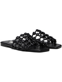 LWG-certified grained goatskin slides. · Open square toe · Braided strap at vamp · Logo patch at padded sheepskin footbed · Leather sole with rubber injection Supplier color: Black Upper: goatskin. Sole: leather, rubber. Made in Italy 252771F124005