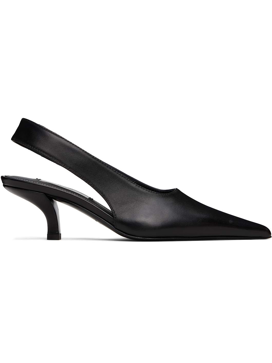 LWG-certified buffed nappa lambskin heels in black. · Pointed toe · Fixed slingback strap · Covered kitten heel with rubber injection · Polished leather sole with rubber injection · Heel: H2" Part of the Garderob collection. Supplier color: Black Upper: lambskin. Sole: leather, rubber. Made in Italy 252771F122001