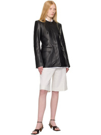 Collarless leather jacket black