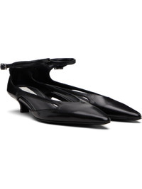 Polished lambskin heels. · LWG-certified leather · Pointed toe · Cutout at sides · Pin-buckle ankle strap · Buffed sheepskin lining · Kitten heel with rubber injection · Leather sole · Heel: H1.25" Supplier color: Black Upper: lambskin. Sole: leather. Made in Italy 252771F122011