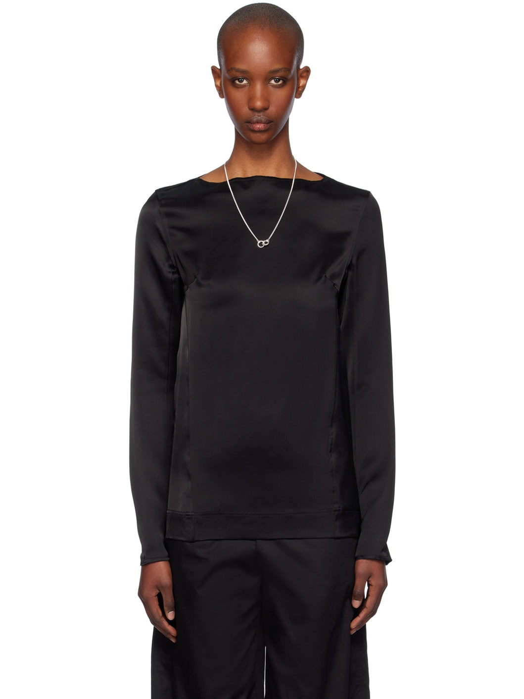 Double-faced viscose satin T-shirt. · Boat neck · Darts at chest · Seams at front · Concealed zip closure at back Supplier color: Black 100% viscose. Made in Portugal 242771F107007
