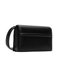 Buffed Palmellato leather top handle bag in black. · Detachable carry handle · Adjustable and detachable crossbody strap · Logo at face · Tab-slot flap · Three-compartment interior · Card slot at interior · Faux-suede lining · Logo-engraved gold-tone hardware · H5" x W8" x D2.5" Supplier color: Black