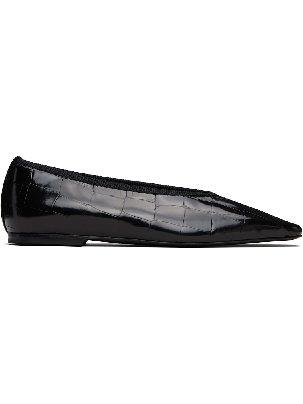 LWG-certified croc-embossed leather ballerina flats in black. · Square toe · Grosgrain collar · Sheepskin lining · Rubber heel · Leather sole Supplier color: Black Leather. Made in Italy 252771F118002