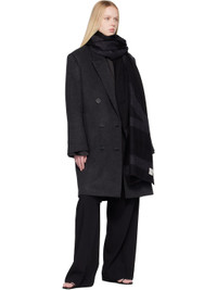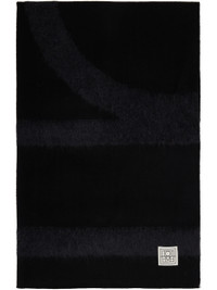 Rectangular brushed wool- and alpaca-blend flannel scarf. · Jacquard logo throughout · Logo patch at face · Fringed detailing at ends · L84" x W30" Supplier color: Black 75% virgin wool, 20% alpaca, 5% polyamide. Made in Italy 252771F028009