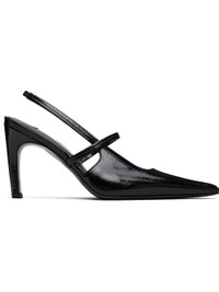LWG-certified patent calfskin heels in black. · Pointed toe · Strap at vamp · Partially elasticized slingback strap · Sheepskin lining · Covered stiletto heel with rubber injection · Polished leather sole with rubber injection · Heel: H3.25" Supplier color: Black Upper: calfskin. Sole: leather, rubber. Made in Italy 252771F122003