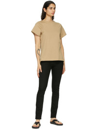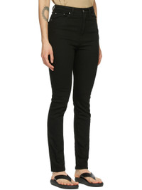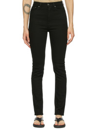 Skinny-fit stretch denim jeans in black. High-rise. Five-pocket styling. Belt loops at waistband. Leather logo patch in tan at back waistband. Zip-fly. Silver-tone hardware. Supplier color: Stay black 94% cotton, 4% polyester, 2% elastane. Made in Italy 211771F069047