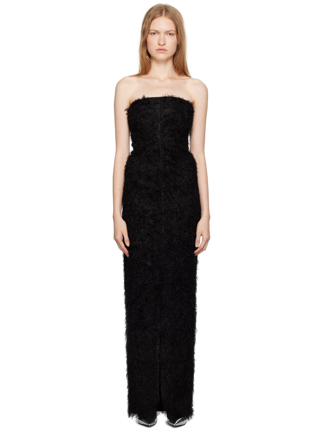 Black Strapless Fil Coupé Maxi Dress