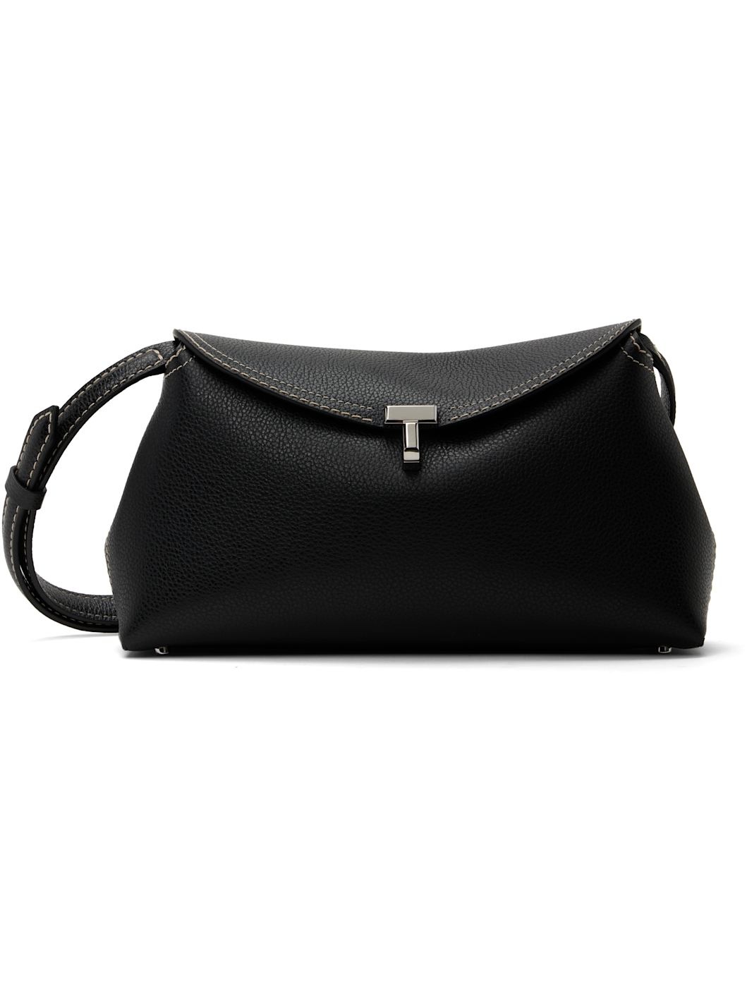 LWG-certified pebble-grained leather clutch in black. · Adjustable and detachable shoulder strap · Logo stamp at face · Bumper studs at base · Turn-lock flap · Card slot at interior · Microsuede lining · Contrast stitching in off-white · H5.5" x W10" x D3.5" Supplier color: Black Leather. Made in Italy 252771F044003
