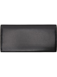 LWG-certified palmellato leather wallet in black. · Concealed gold-tone logo stamp at face · Turn-lock flap · Six card slots at two-compartment interior · Gold-tone hardware · H4" x W7.75" x D0.75" Supplier color: Black Leather. Made in Spain 251771F040001