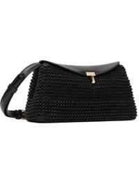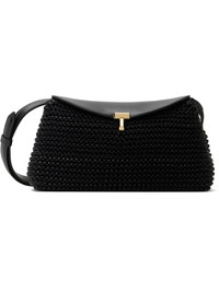 Black T-Lock Woven-Leather Clutch