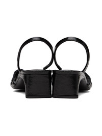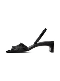 Patent calfskin heeled sandals in black. · Open square toe · Partially elasticized ankle strap · Logo stamp at padded footbed · Grained sheepskin lining · Covered stiletto heel with rubber injection · Polished leather sole · Heel: H1.75" Supplier color: Black Upper: calfskin. Sole: leather, rubber. Made in Italy 241771F125000