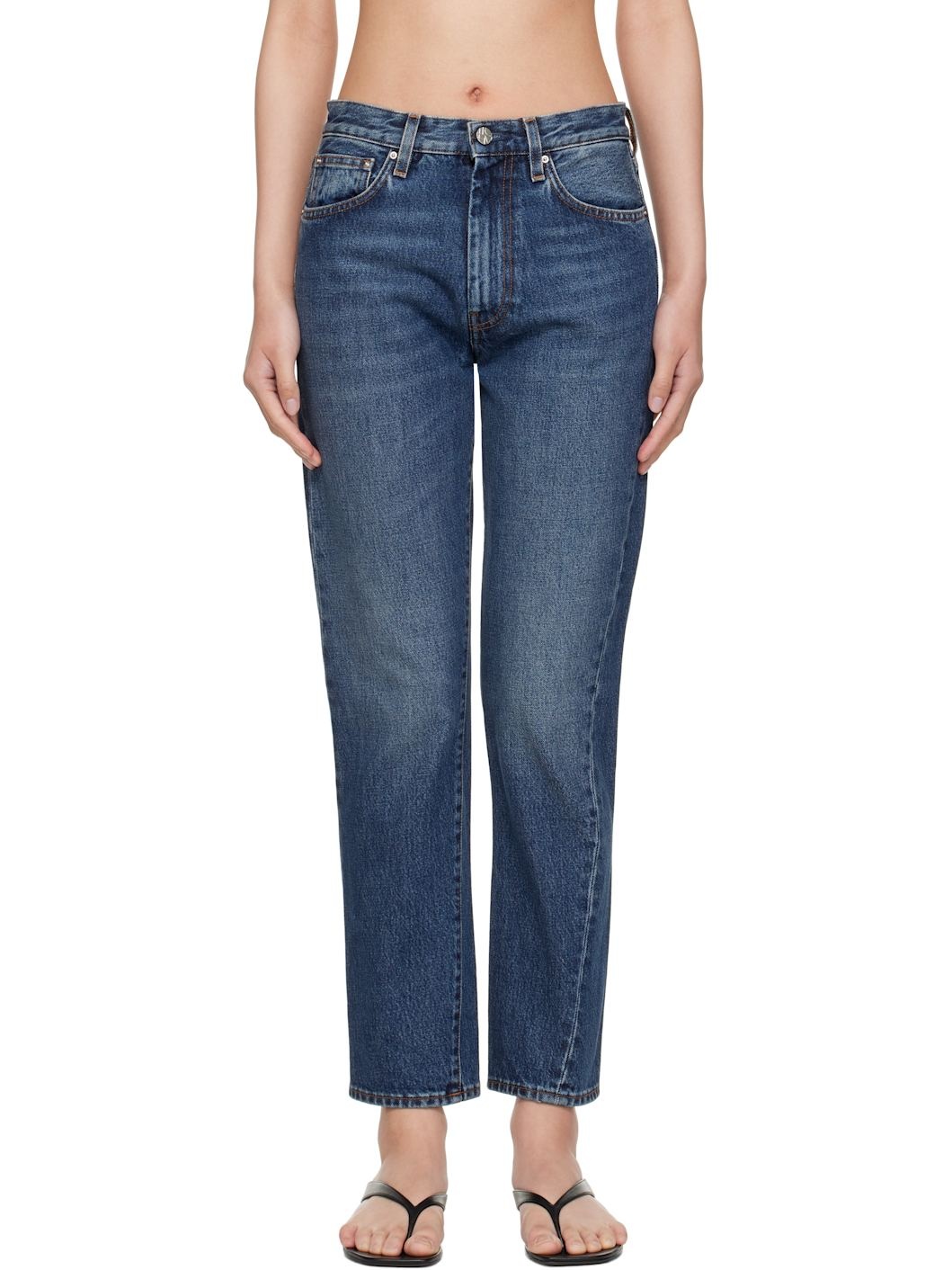 Non-stretch organic cotton denim jeans. Fading and whiskering throughout. · Straight-leg · Mid-rise · Belt loops · Five-pocket styling · Zip fly · Twisted outseams · Leather logo patch at back waistband · Silver-tone hardware · Contrast stitching in tan Supplier color: Washed blue 100% organic cotton. Made in Italy 252771F069008
