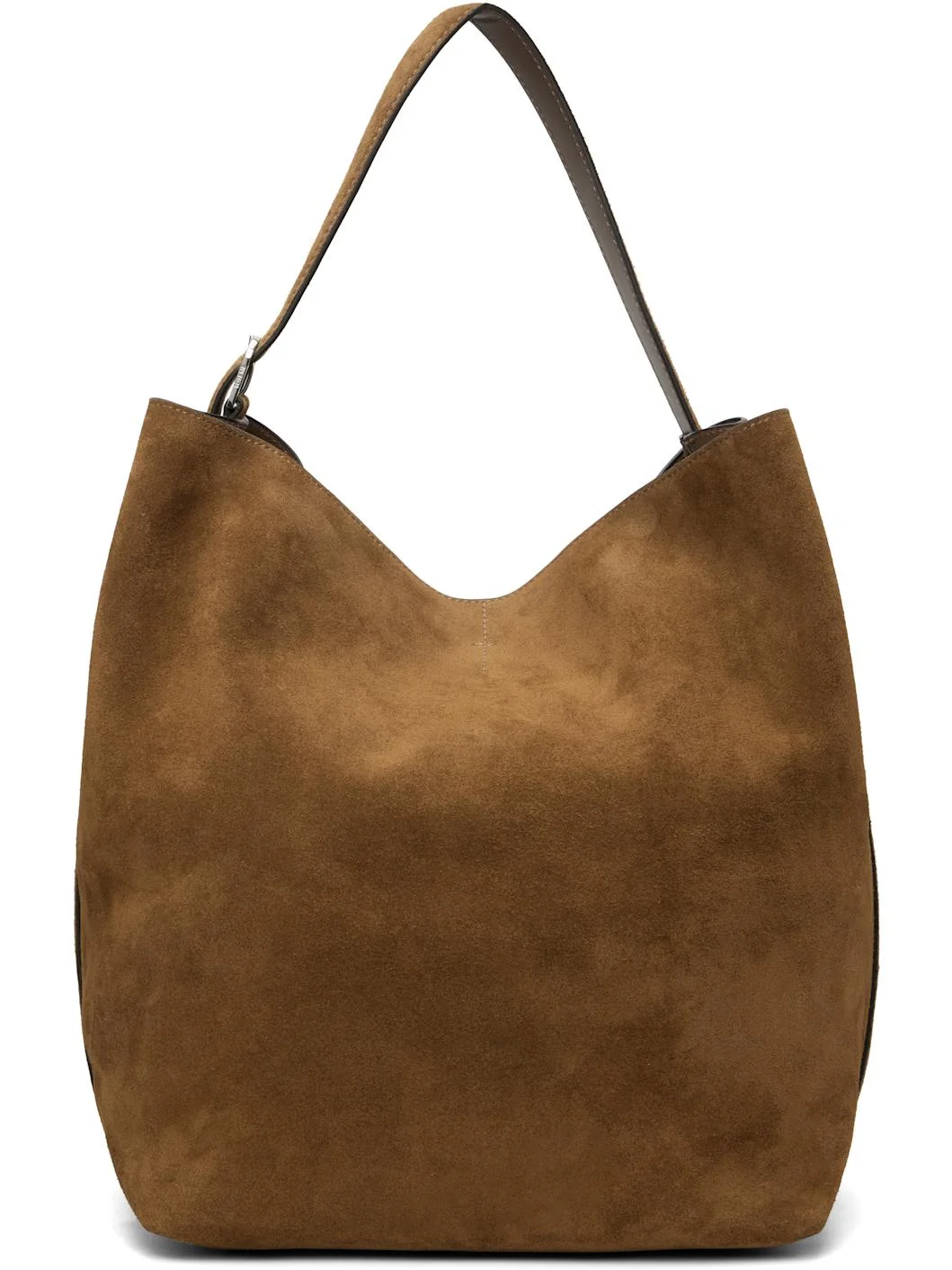 LWG-certified suede tote. · Adjustable shoulder strap · Clasp closure · Patch pockets at interior · Suede interior · H14.75” x W20.5” x D11.5” Supplier color: Tan Leather. Made in Italy 261771F049002