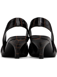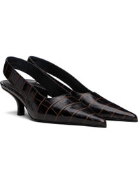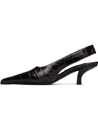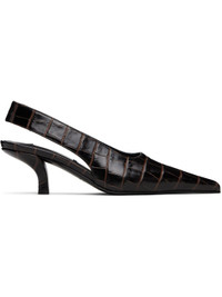 Croc-embossed leather heels in brown. · Pointed toe · Fixed slingback strap · Buffed sheepskin lining · Covered kitten heel with rubber injection · Leather sole · Heel: H2" Supplier color: Dark brown Upper: leather. Sole: leather, rubber. Made in Italy 252771F122000