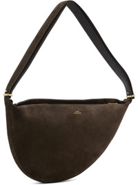 LWG-certified suede shoulder bag. · Adjustable shoulder strap · Logo stamp at face · Zip closure · Card slot at interior · H8" x W13" x D1.5" Supplier color: Pepper Leather. Made in Italy 251771F048014