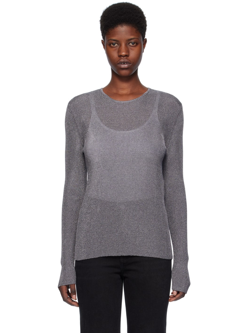 Metallic rib knit gunmetal