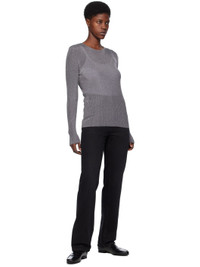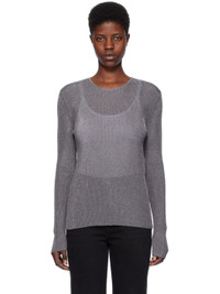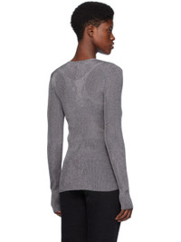 Rib knit cotton sweater. · Metallic thread detailing throughout · Crewneck Supplier color: Gun metal 70% cotton, 30% metallised fibre. Made in Romania 241771F096001