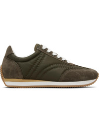 Low-top recycled taffeta and suede sneakers. · Lace-up closure · Logo patch at padded tongue · Padded collar · Logo embossed at heel collar · Moisture-wicking terrycloth lining · Foam rubber midsole · Treaded rubber sole Supplier color: Dark olive Upper: textile, leather. Sole: rubber. Made in Portugal 261771F128001