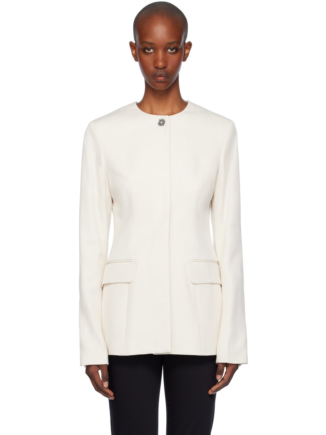Off-White Collarless Cinched Jacket