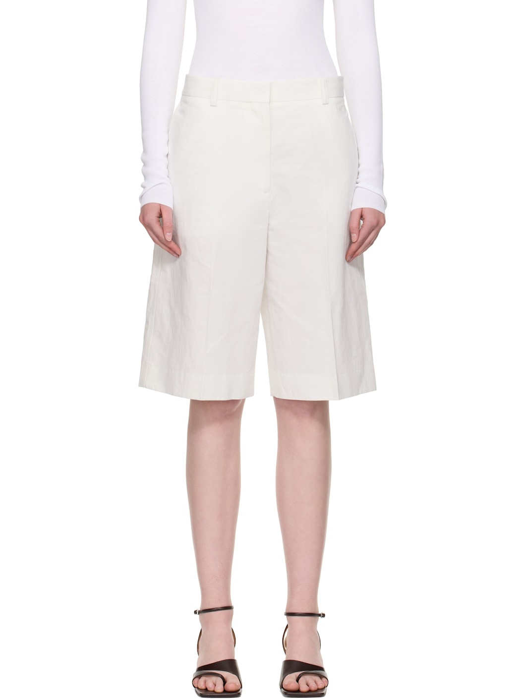 Plain-woven slub cotton- and linen-blend shorts. · Belt loops · Four-pocket styling · Zip fly Supplier color: Off-white 74% cotton, 26% linen. Made in Portugal 252771F088003