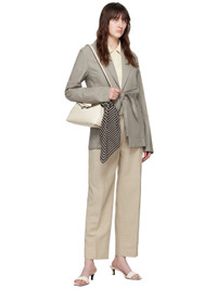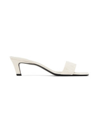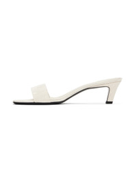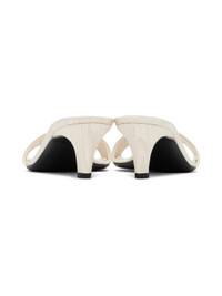 Moire heeled sandals in off-white. · Open square toe · Concealed thong-style strap at vamp · Logo stamp at grained leather footbed · Covered kitten heel with rubber injection · Leather sole · Heel: H2.5" Supplier color: Off-White Upper: textile. Sole: leather, rubber. Made in Italy 242771F125001