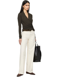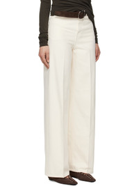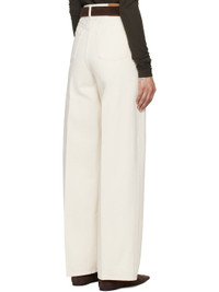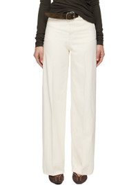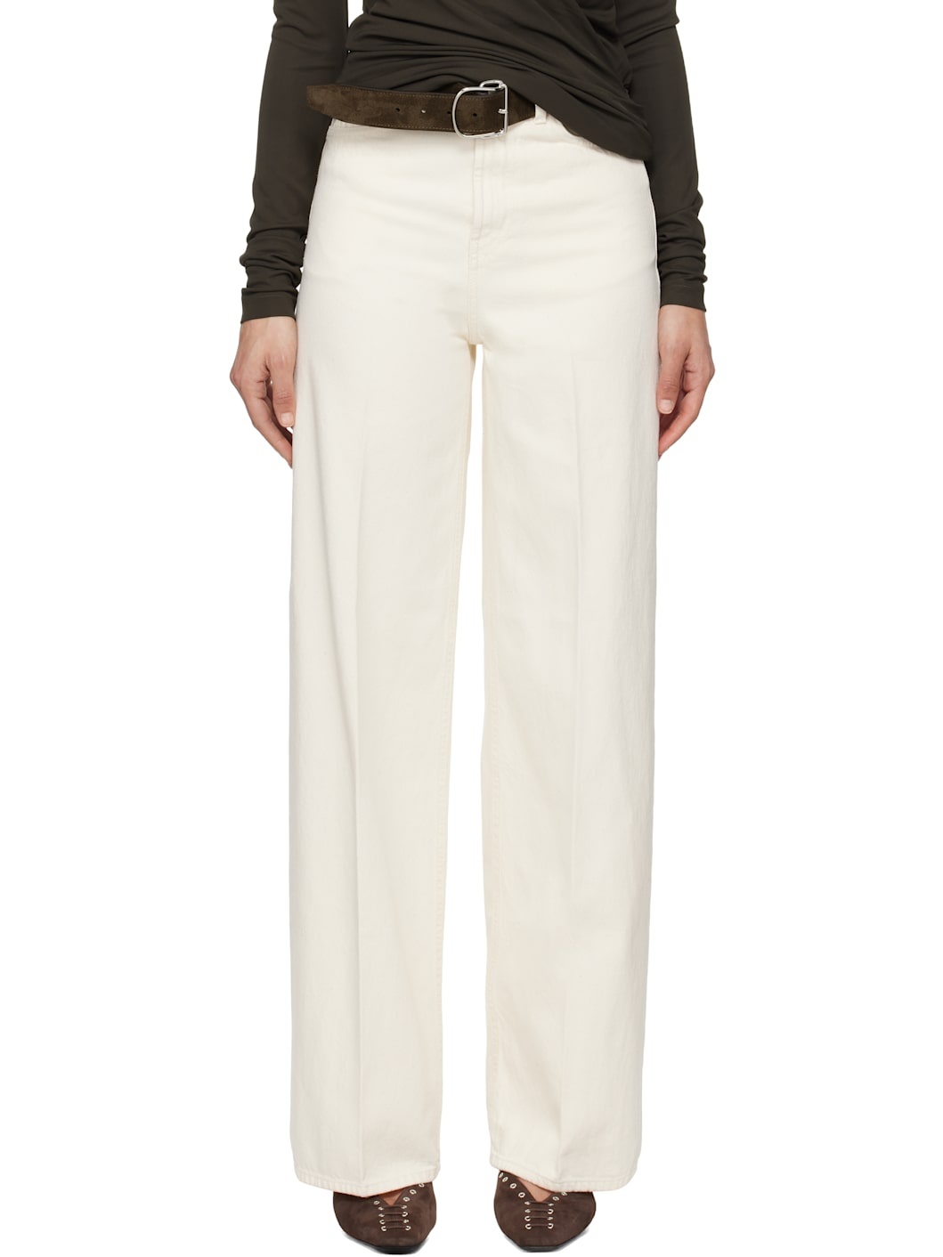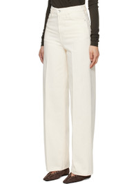 Wide-leg non-stretch organic cotton denim jeans. · High-rise · Belt loops · Five-pocket styling · Zip fly · Creased legs · Logo patch at back waist · Logo-engraved silver-tone hardware Supplier color: Ecru 100% organic cotton. Made in Italy 251771F069012