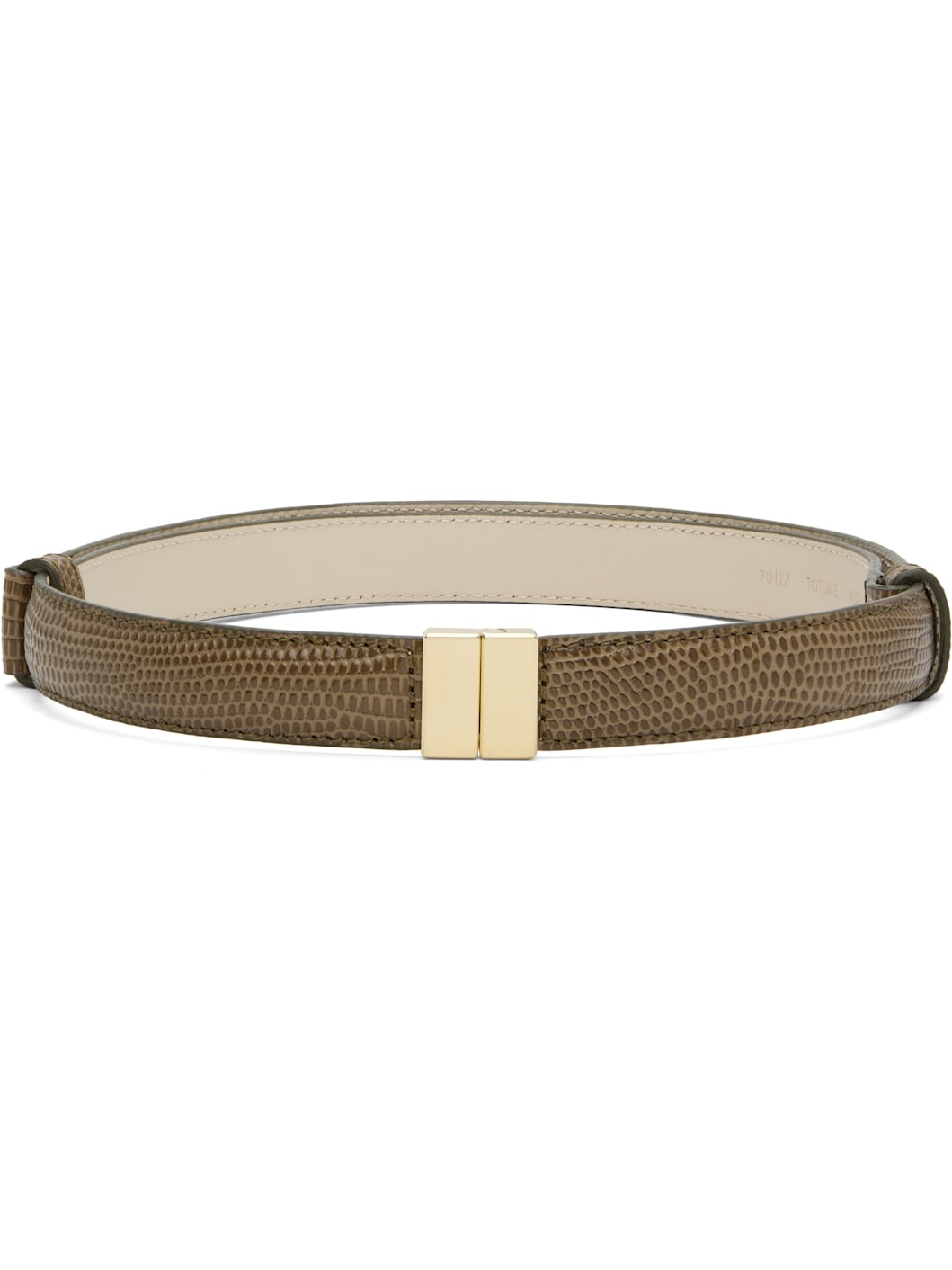 Lizard-embossed calfskin belt. · Adjustable tab-slot fastening · Gold-tone hardware · W0.75" Supplier color: Dark olive Calfskin. Made in Italy 252771F001003