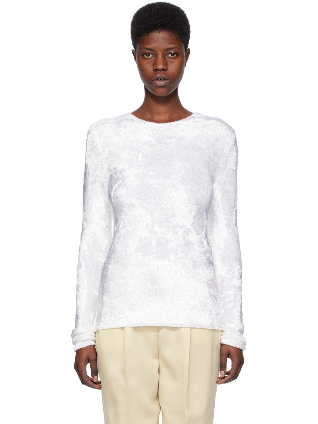 Viscose-blend chenille T-shirt. Crewneck. Supplier color: White 85% viscose, 15% polyamide. Made in Romania 241771F110012