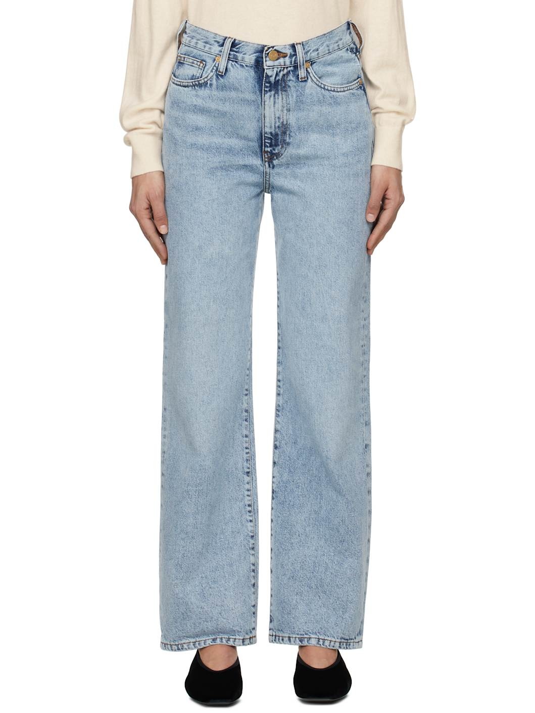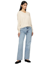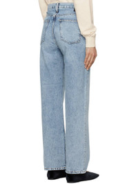 Non-stretch recycled cotton-blend denim jeans. Fading and whiskering throughout. · Straight-leg · Belt loops · Five-pocket styling · Zip fly · Leather logo patch at back waistband · Contrast stitching in tan Supplier color: Mid blue 60% recycled cotton, 40% cotton. Made in Italy 242933F069002
