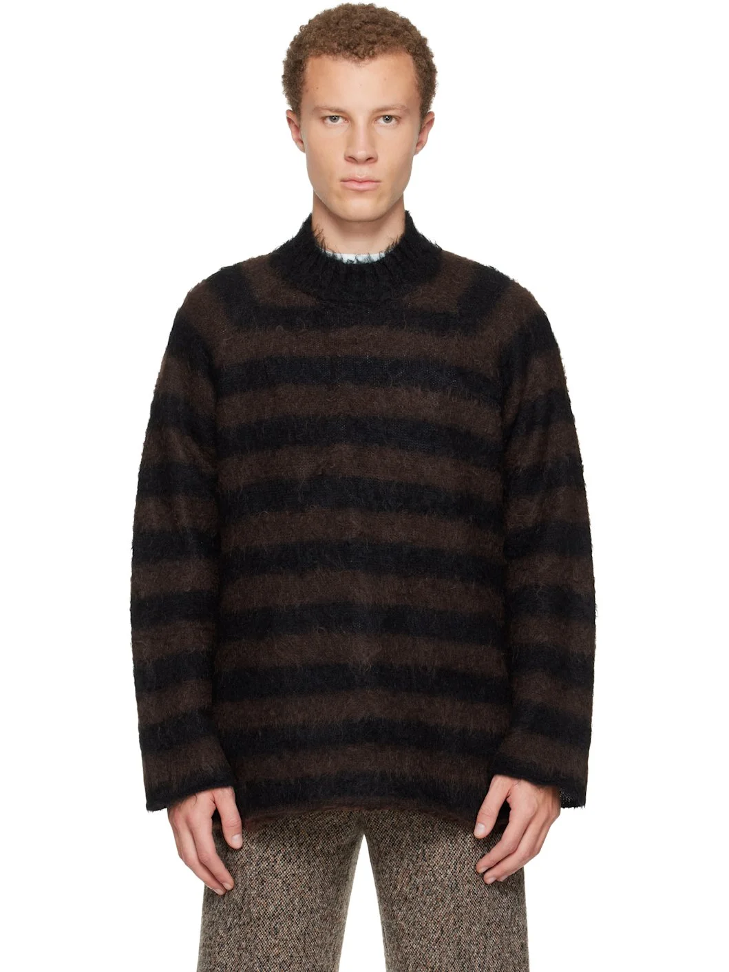 Brushed knit mohair-blend sweater. · Stripe pattern throughout · Rib-knit mock neck Supplier color: Blk Border 38% mohair, 37% nylon, 25% wool. Made in Japan 252414M205000