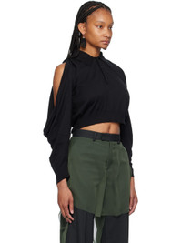 Knit cotton- and nylon-blend polo. · Rib knit spread collar, hem, and cuffs · Three-button placket · Ruching at shoulders · Cutout and draping at sleeves Supplier color: Black 70% cotton, 20% polyamide, 10% silk. Made in Japan 241414F108000