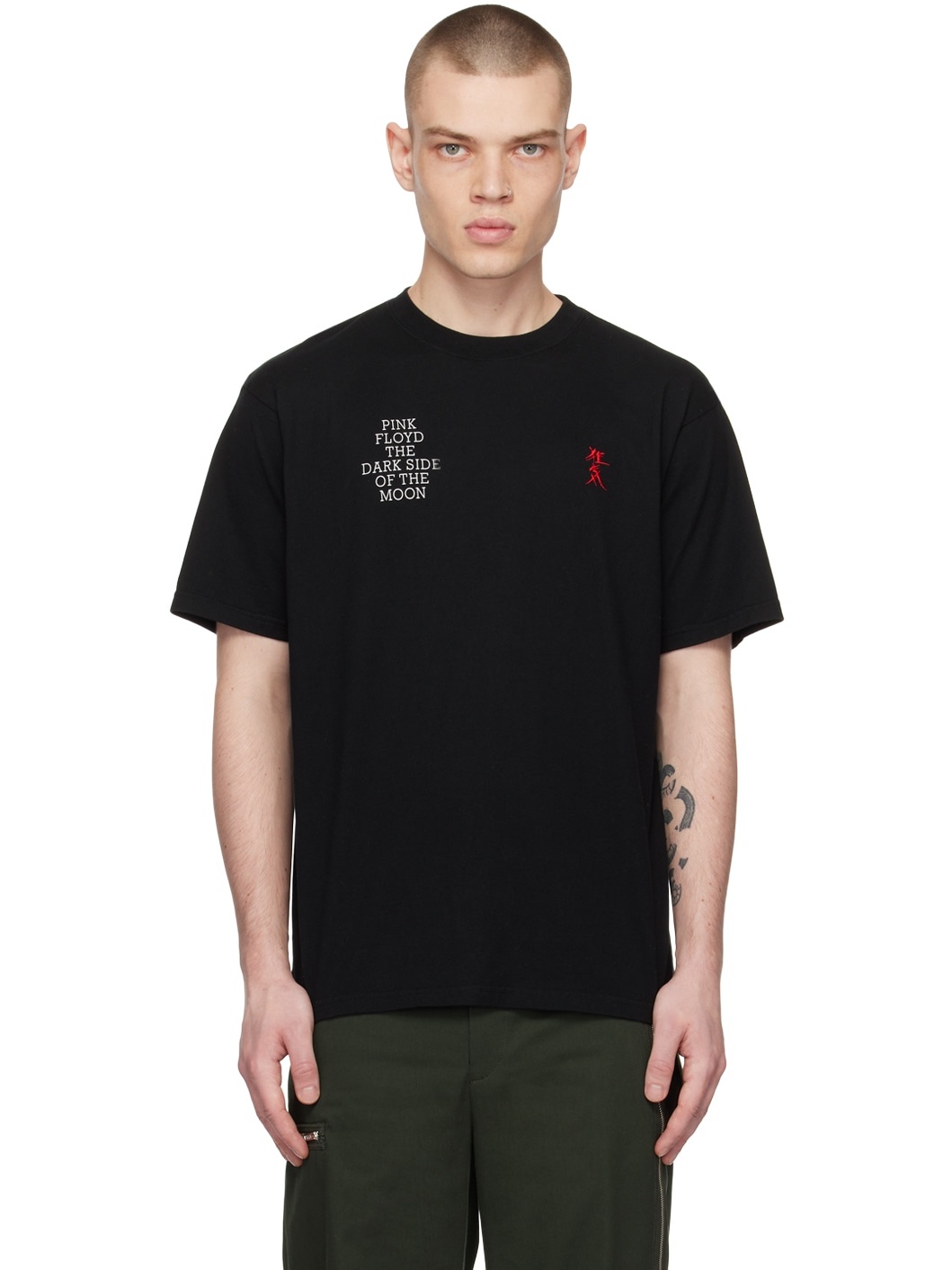 Cotton jersey T-shirt. · Rib knit crewneck · Text embroidered and printed at chest · Graphic printed at back Part of UNDERCOVER's Pink Floyd capsule collection. Supplier color: Black 100% cotton. Made in Japan 231414M213064